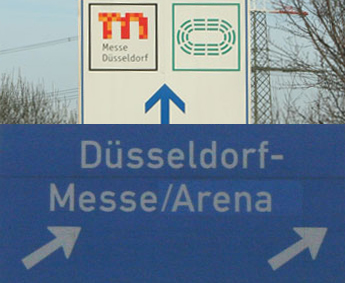 Die LTU arena liegt verkehrsgünstig im Norden der Stadt an der Autobahn A44, Abfahrt 29 Messe-Nord/Arena. Autofahrer können grundsätzlich der Messe-Beschilderung folgen, da die Messe nicht nur direkt neben der Arena beginnt, sondern weil man sich auch noch die Parkfläche P1 sowie weitere Parkflächen mit insgesamt 22.000 Stellplätzen teilt.