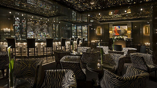 Während die Eingangs-Lobby recht klein ist, befindet sich ein Stockwerk höher die Lobbylounge. „Dieser Bereich ist öffentlich und wir freuen uns sehr über Düsseldorfer, die unser Angebot nutzen", so Valerie Naust. Bei dezenter Pianomusik in einen der bequemen Sessel oder in eine Couch zurückgelehnt, kann man dort das emsige Geschehen ringsum genießen. Ebenfalls öffentlich ist die angrenzende Hotel Bar, die durch ihr außergewöhnliches, spannungsvolles Design besticht. Hinterleuchteter, schwarzer Marmor im Wechselspiel mit edlem Holz schafft eine aufregende und zugleich einladend warme Stimmung. Neben edlen Spirituosen gibt es dort auch verschiedene Champagner-Marken im offenen Ausschank.