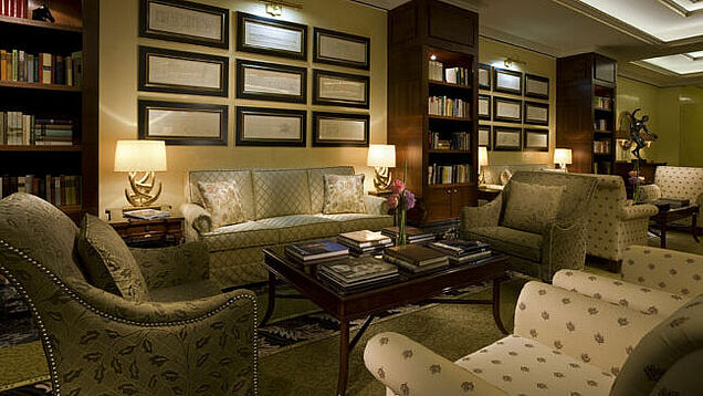 Wer eine große Hotel-Lobby erwartet, wenn man den Breidenbacher Hof betritt, ist wohl zunächst etwas verwundert. Der Bereich ist überschaubar, fast schon familiär, besticht dabei aber durch ein edles und einladendes Ambiente. Während die Gäste an der Rezeption einchecken, ist das Gepäck bereits in einem versteckten Aufzug „hinter den Kulissen" auf dem Weg in Richtung Zimmer.