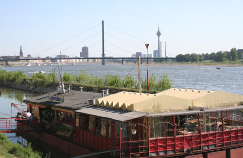 Vielen Düsseldorfern ist das Schiff am Robert-Lehr-Ufer, das man über eine Zufahrt unter der Theodor-Heuss-Brücke (ausgeschildert: Restaurantschiffe / Sporthafen) erreicht, noch als Kollers Kahn bekannt. Lange Jahre gastronomische Institution und Szene-Treff, geriet Dagmar Koller mit ihrem Kahn in finanzielle Schräglage und musste schweren Herzens aufgeben.
