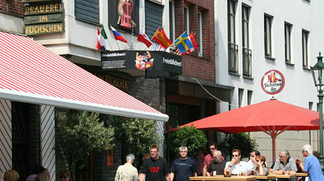 Nach umfangreichen Umbauten präsentiert sich die ehrwürdige Hausbrauerei Uerige mittlerweile als Altbier-Tempel mit unterschiedlichsten Räumlichkeiten. Im Sommer ist der Straßenausschank aber immer noch am beliebtesten.