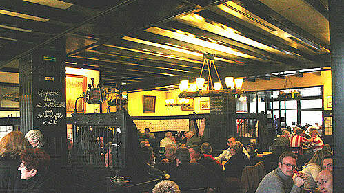 Die Schwemme ist Dreh- und Angelpunkt des Füchschens. Hier kann man nicht nur ein frisch gezapftes Füchschen für den sofortigen Konsum ordern, sondern sich auch am Beichtstuhl mit Vorräten für zu Hause eindecken. Große Fässer vermitteln Brauerei-Flair. Im angrenzenden Gastraum finden Füchschen-Fans an 60 Birkenholz-Tischen Platz. Lichtdurchflutet ist der geräumige Wintergarten, der ebenso gerne von Gesellschaften genutzt wird, wie der „Fuchsbau“ im backstein-gemauerten Kellergewölbe.