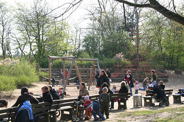 Im "Hinterland" sollen Boulderwand und Hangelseile die jungen Besucher in ihren Bewegungsabläufen schulen. Im Insel-Dorf fühlen sich vor allem Kleinkinder wohl, finden sie dort doch einen Spielplatz mit unterschiedlichen Wipptieren und Hütten vor.