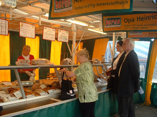 Während der Duft ofenfrischer Backwaren am Nachbarstand immer mehr Kunden anlockt, hat Violetta Hapeta von der Landbäckerei Berns alle Hände voll zu tun: Sie ist damit beschäftigt permanent Brötchen vor Ort nachzubacken, Kundenwünsche zu erfüllen und mit ihren Stammkunden über den letzten Urlaub oder die Enkelkinder zu plaudern. "Ich liebe meine Arbeit", sagt sie strahlend, trotz des morgendlichen Frühaufstehens, wie sie zugibt.