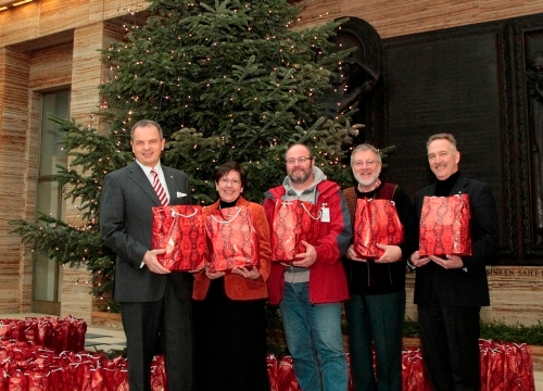 Seit vielen Jahren schon schenkt Henkel jedem Düsseldorfer Mitarbeiter zu Weihnachten eine Tüte mit Obst und Weihnachtsköstlichkeiten. In diesem Jahr entschlossen sich besonders viele Henkelaner, auf ihr Präsent zu verzichten und es an Bedürftige weiterzugeben. So kamen über 250 Weihnachtstüten zusammen, die heute an vier Einrichtungen übergeben wurden: an das TREBE Café, eine Anlaufstelle für obdachlose Mädchen und Frauen in Düsseldorf, an den SKFM Düsseldorf (Sozialdienst katholischer Frauen und Männer e.V.) und seine Einrichtung "Knackpunkt", die über 130 Mädchen und Frauen betreut, die auf der Straße leben, an die Tafel der Diakonie Essen und an den Katholischen Gefängnisverein Düsseldorf e.V.
