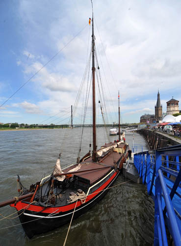 Alter Rheinsegler ankert mehrere Tage in Düsseldorf