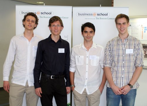 Christian Kraus-Kunzendorf (18), Clemens Höfer (17), Gerd Aktschurin (18), Jan-Philip von Waldthausen (18, v.l.) freuen sich über den Erfolg. Foto: business@school