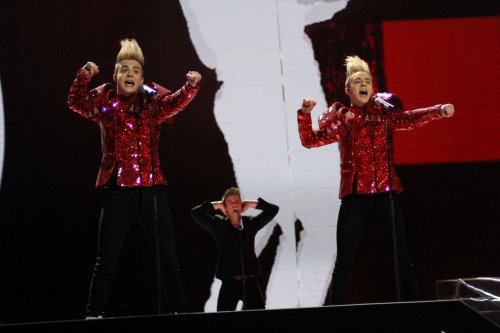 Das schrille irische Duo Jedward ist erwartungsgemäß ins Finale eingezogen. Foto: Elke Roels (EBU)