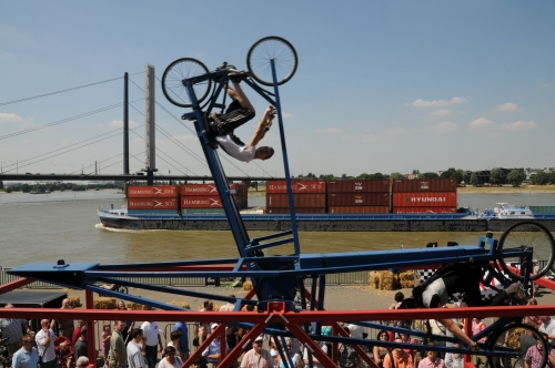 Auf Bike-Loopings, Simulatoren und anderen Fun-Geräten kann beim 6. Düsseldorfer Fahrradtag jede Art von Bewegungsdrang spontan ausgelebt werden. Foto: Veranstalter