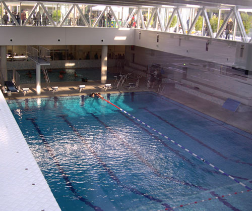 Die Gesamtnutzfläche des Stadtteilzentrums - ohne Schwimmbad - beträgt rund 1.500 Quadratmeter. Das <link internal-link>Schwimmbad umfasst nochmals rund 3.000 Quadratmeter und verfügt über zwei Becken: Ein Schwimmerbecken von 25 Metern Länge und einen 3 Meter hohen Sprungturm. Darüber hinaus gibt es ein separates Lehrschwimm- und Kinderbecken. Das barrierefreie Schwimmbad bietet damit erfahrenen Schwimmern sowie Anfängern die Möglichkeit, sportlich im Wasser aktiv zu werden. Die Vielfalt an Wasseraktivitäten im „Schwimm’ in Bilk“, so der Name des neuen Bades, hat für jeden Besucher etwas Passendes im Angebot: Das Programm reicht von der Wassergewöhnung für Kinder ab drei Jahren über das Training für diverse Schwimmabzeichen bis hin zum Aquajogging. Die rundum begehbare Glaskuppel, die so genannte "Laterne", trägt in knapp zehn Metern Höhe dazu bei, dass die Schwimmhalle lichtdurchflutet ist und macht die architektonische Besonderheit des Schwimmbades aus.