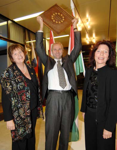 Düsseldorfs Gründezernentin Helga Stulgies und Gartenamtsleiter Manfred Krick bekamen vor 500 geladenen Gästen im Festsaal des archäologischen Museums gemeinsam mit NRW-Landtagspräsidentin Regina van Dinther die mehr als zehn Kilogramm schwere Plakette überreicht. Die 40 mal 40 Zentimeter große Platte, die von zwölf goldenen Blumen geziert wird, die für die zwölf teilnehmenden Länder stehen, wurde beim Rückflug kurzerhand als Handgepäck deklariert und durch alle Kontrollen geschleust.