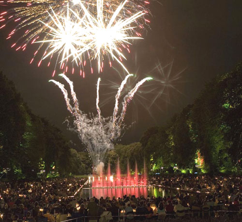 Mehr als 250.000 Besucher kamen in den letzten 14 Jahren in den Benrather Schlosspark, um beim traditionellen Sommerfestival einen romantischen Abend im kurfürstlichen Ambiente zu erleben. Längst wurden die Open-Air-Konzerte zu einer Kultveranstaltung, die auch schon im benachbarten europäischen Ausland als Geheimtipp gilt. Bekannte Werke aus der klassischen Musikliteratur erklingen im Zusammenwirken mit Park- und Schlossillumination, im Spiegelweiher schießen die "Dancing Waters" synchron dazu bunte Wasserfontänen in den Nachthimmel und zum Schluss gibt’s ein brillantes Musikfeuerwerk – ein Konzept, das eigens für den Benrather Schlosspark geschaffen wurde. Bewusst verzichtet man auf moderne Showeffekte und verwendet passend zum Barockschloss nur die „natürlichen“ Mittel wie Wasser, Feuer und Licht.