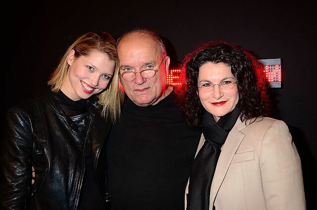 Peter Lindbergh (Mitte) konnte sich über zahlreiche Ehrengäste bei der Ausstellungseröffnung im NRW-Forum freuen. Foto: Schwarzkopf
