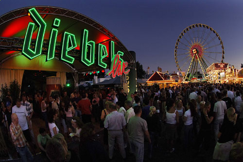 In den Festzelten steigt auf der Düsseldorfer Rheinkirmes auch 2012 wieder die Party. Foto: Diebels