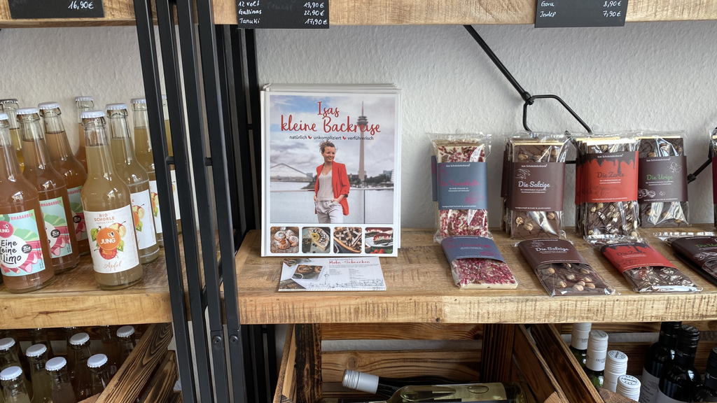 Die Schokoladen sind jedoch nicht das erste Produkt, in dem Isa ihre beiden Leidenschaften verbinden konnte. „Isas kleine Backreise“ ist ihr eigenes Backbuch, das im Herbst 2022 erschienen ist. Nach dem Gegenwind, den sie als junge Gründerin erfuhr, war es ihr wichtig, den Menschen Danke zu sagen, die immer an sie geglaubt haben. Da Backen in ihrer Familie schon immer eine große Rolle spielte, war für Isa klar: Ein Backbuch sollte ihre Geschichte erzählen. Um die 60 Rezepte nehmen Backbegeisterte mit auf eine Reise durch die Jahreszeiten und erzählen von den Menschen und Orten, die Isas Leben geprägt haben. Unter anderem finden sich Rezepte ihrer Ur-Oma und ihrer Mutter, die Isa ein wenige abgewandelt hat. Tatsächlich wussten ihre Freund:innen und Familie bis zum Erscheinen hier ebenfalls nichts von dem Buch. Auch ihre Wahlheimat Düsseldorf ist im Backbuch vertreten. Mit Illustrationen der Düsseldorfer Skyline, aber auch mit typischen Dingen, die Düsseldorf ausmachen.