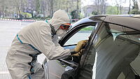 Personen, die getesten werden möchten, müssen für einen Corona-Test nicht mehr aus ihrem Pkw aussteigen