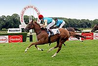 Auf dem Schadowplatz können Passanten und Reitsportfans am 1. August zum "Sieger-Jockey" werden und sich fotografieren lassen.