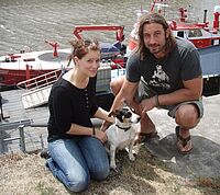 Der kleine Jack Russell Terrier Paul kam auf dem Rhein nicht mehr gegen die Strömung an. Zum Glück war das Schiff der Feuerwehr gerade auf einer Probefahrt.
